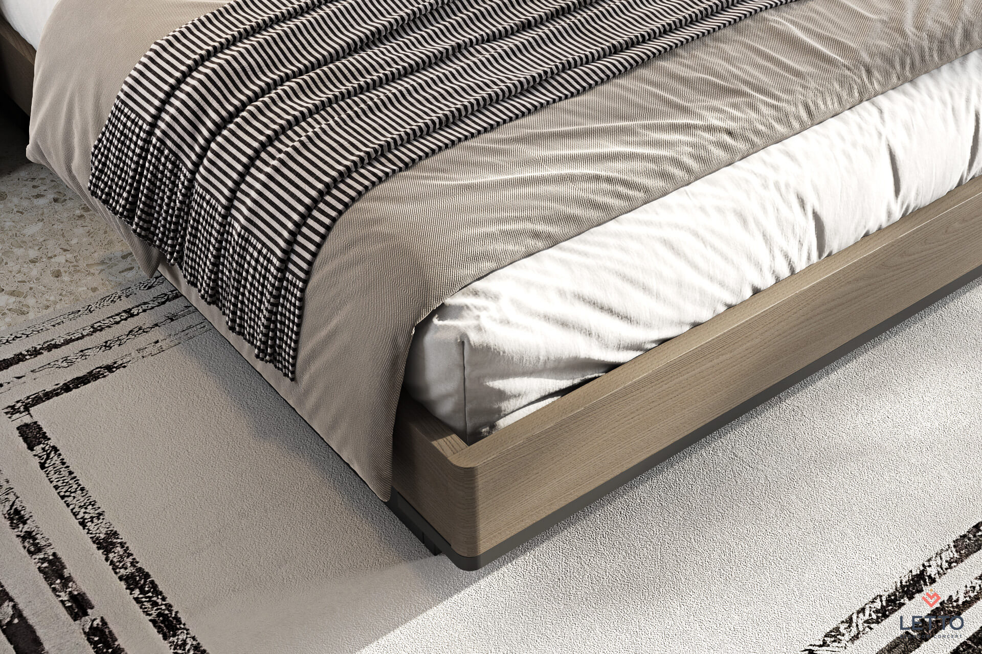 Κρεβάτι από ξύλο δρυς. Συνδυάζει μασίφ ξύλινες επιφάνειες και ψάθα στο κεφαλάρι. Το ποδαρικό έχει στρογγυλεμένες γωνιές, στηρίζεται σε ξύλινη βάση με άνετο αποθηκευτικό χώρο. Διαθέσιμο σε 2 διαστάσεις στρώματος και 11 διαφορετικά χρώματα φυσικού καπλαμά. Προσαρμόζεται εύκολα led φωτισμός στο κεφαλάρι και τη βάση. Διαθέσιμα και μαξιλάρια για το κεφαλάρι.