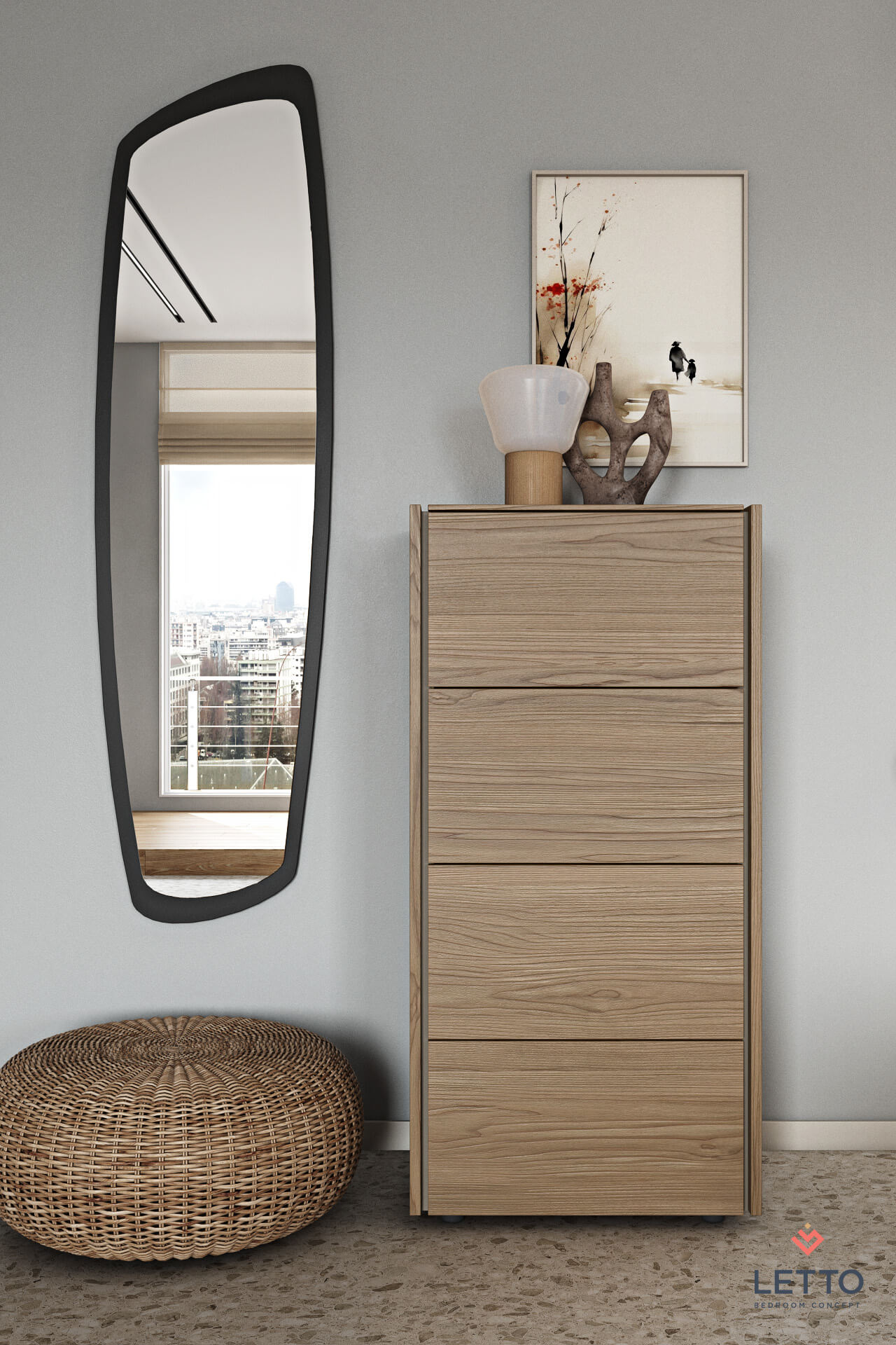 Η συρταριέρα διαθέτει 4 συρτάρια αποθήκευσης ίδιου μεγέθους και το εσωτερικό τους είναι δίχρωμο κατασκευασμένο από ανάγλυφη μελαμίνη. Προαιρετικά μπορούν να ενσωματωθούν διαφόρων ειδών usb φόρτισης!